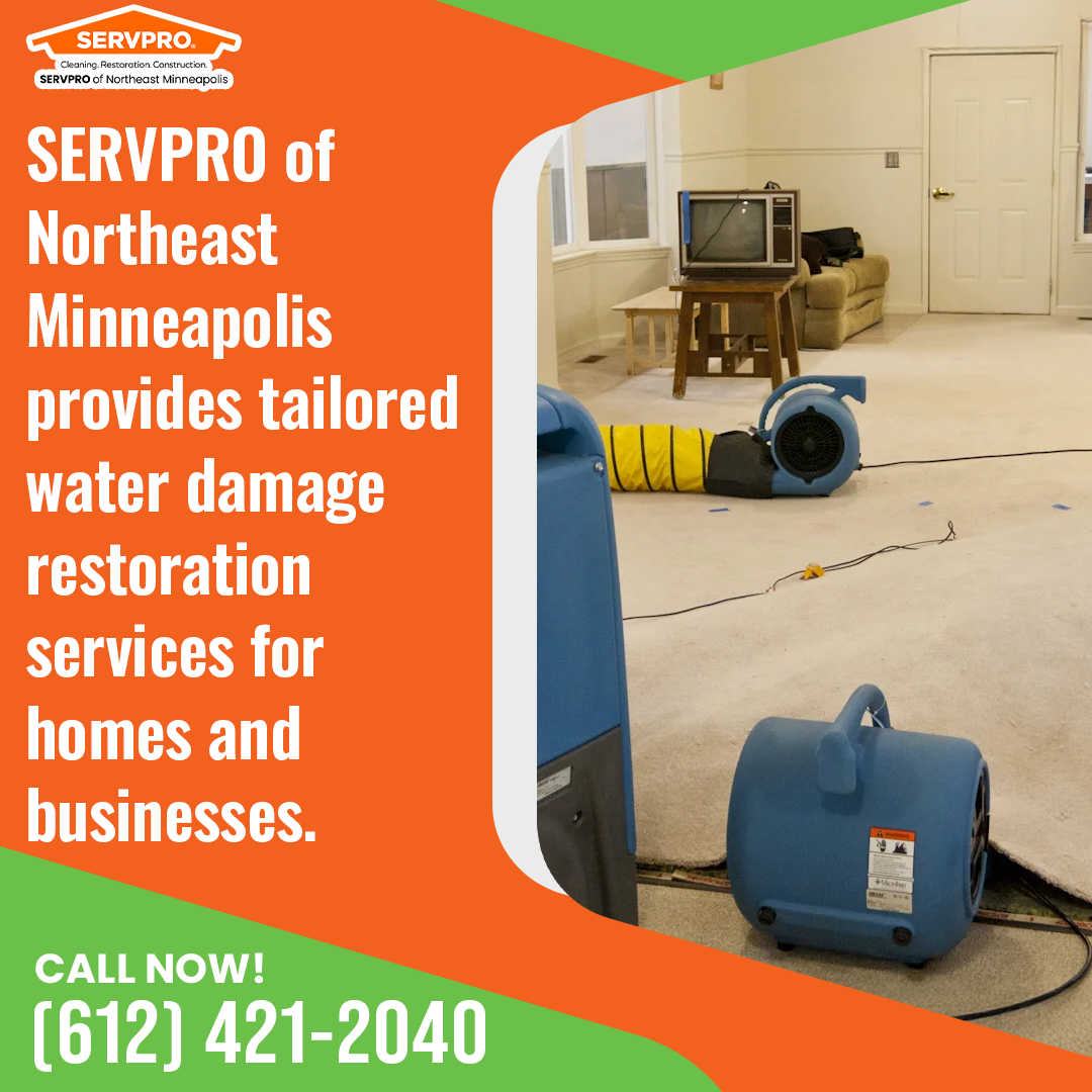 SERVPRO of Northeast Minneapolis provides tailored water damage restoration services for homes and businesses.